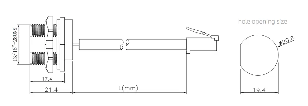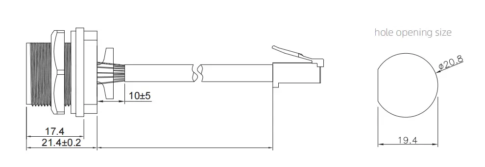 RJ45 Female Back Mount Receptacle with wire Glued (Threaded) RJ45 Female Back Mount Receptacle with wire non-glued (Threaded)